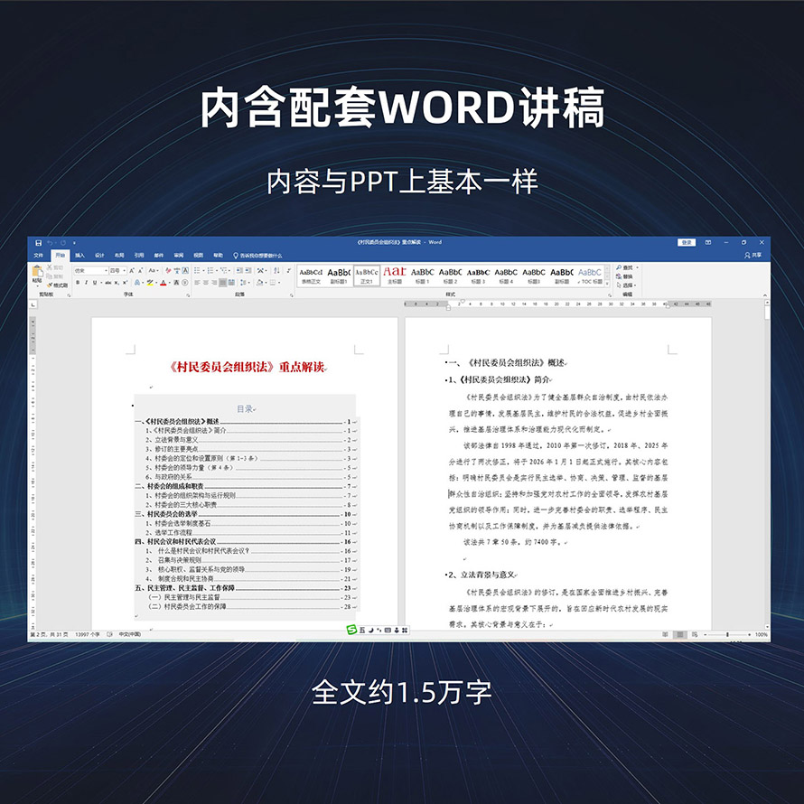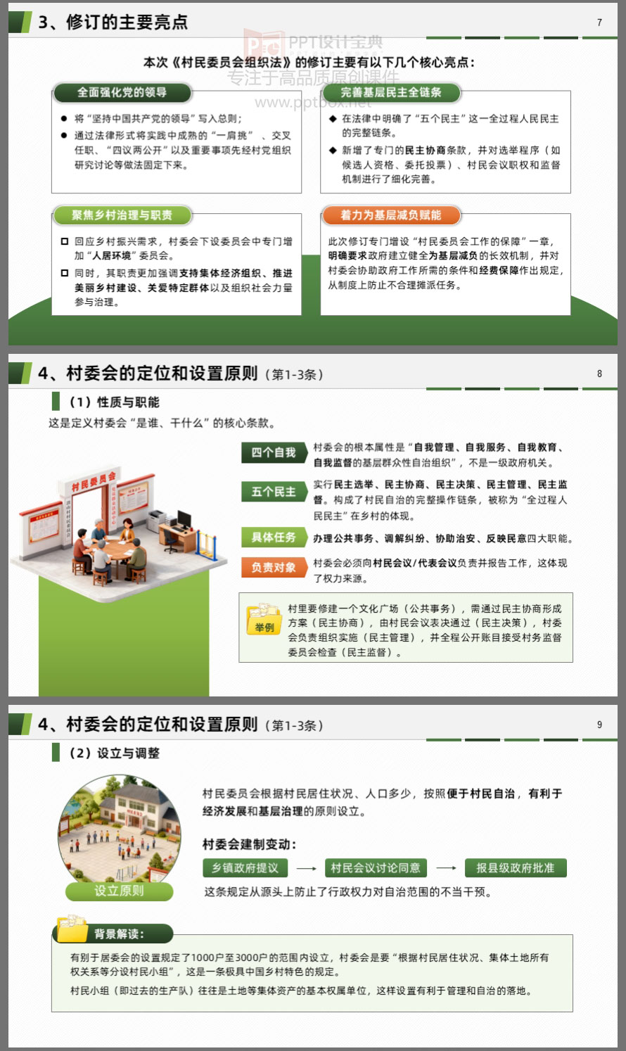 本PPT是以2026年1月1日生效的《村民委员会组织法》为蓝本而制作,重点内容全覆盖,并穿插一些实践案例辅助说明。PPT共50页,含对应WORD文稿,易于编辑修改。