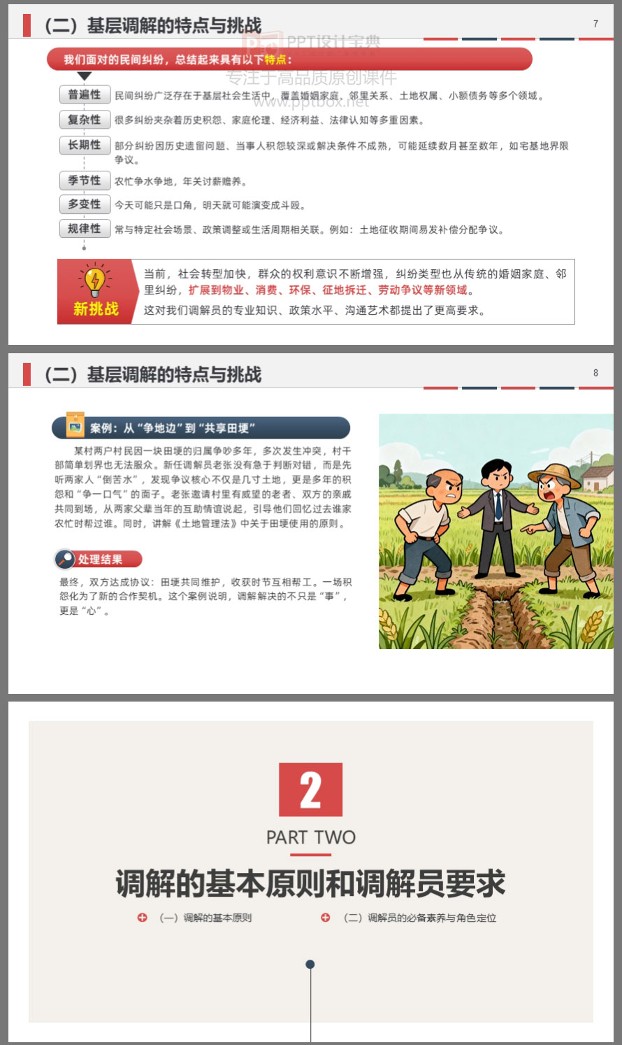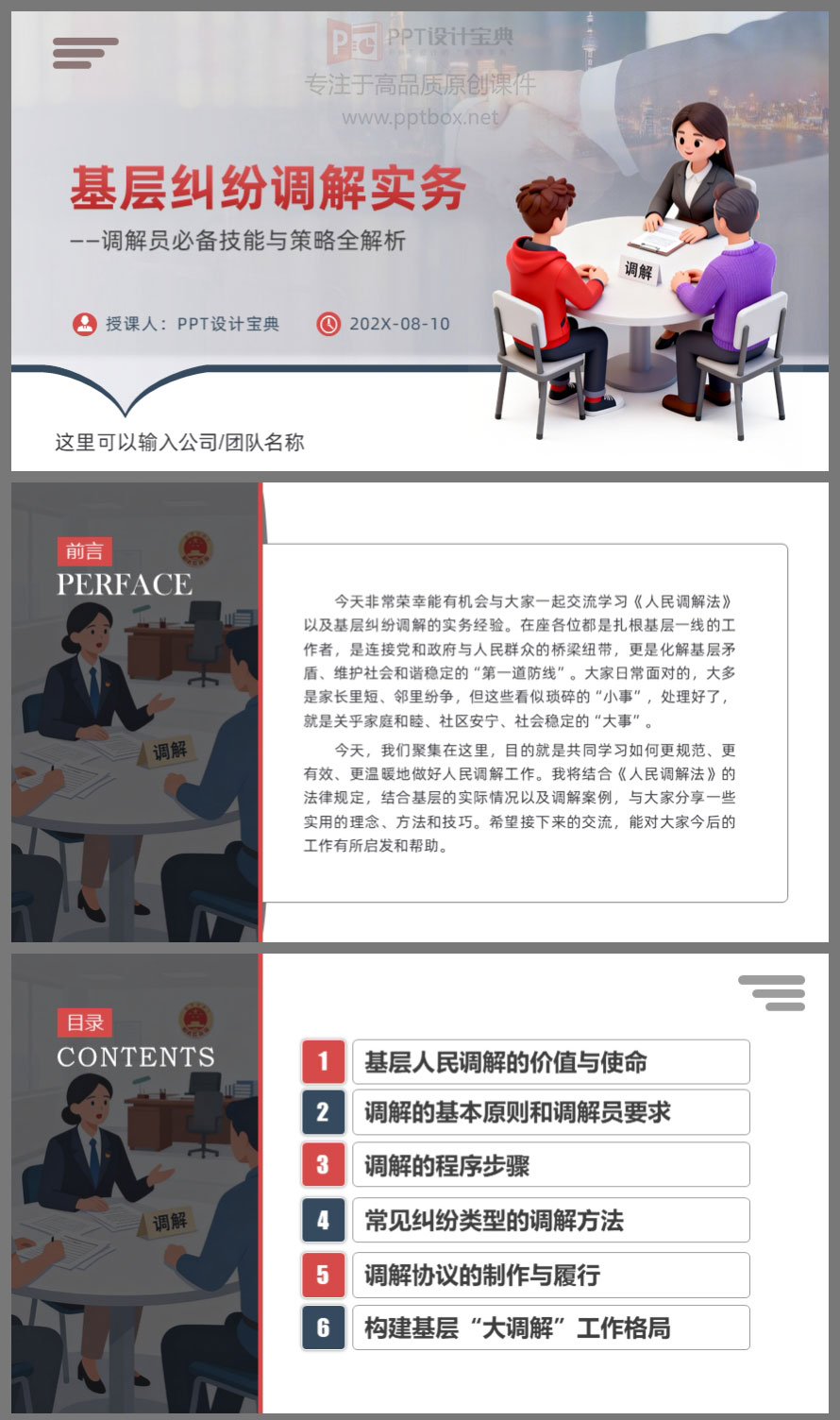 调解不仅是化解矛盾,更是连接人心、构建和谐的桥梁。本课件深入解读《人民调解法》,结合丰富基层案例,传授调解员必备的法律素养、沟通技巧与情绪管理方法。学习如何通过“情理法”融合,将纠纷转化为共识,真正实现“案结事了人和”。助力基层治理,从成为一名有温度的调解员开始。
