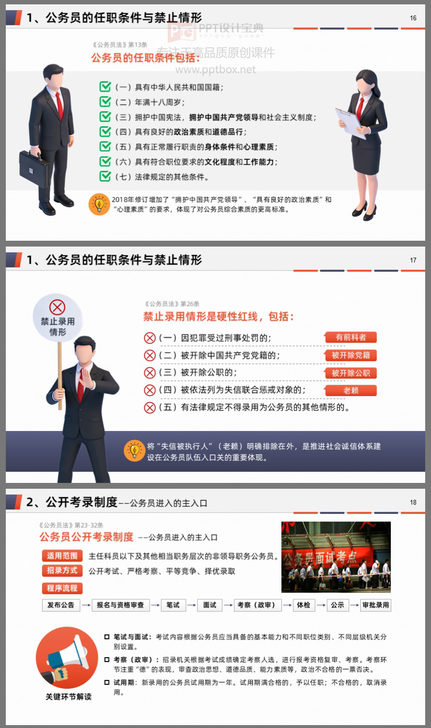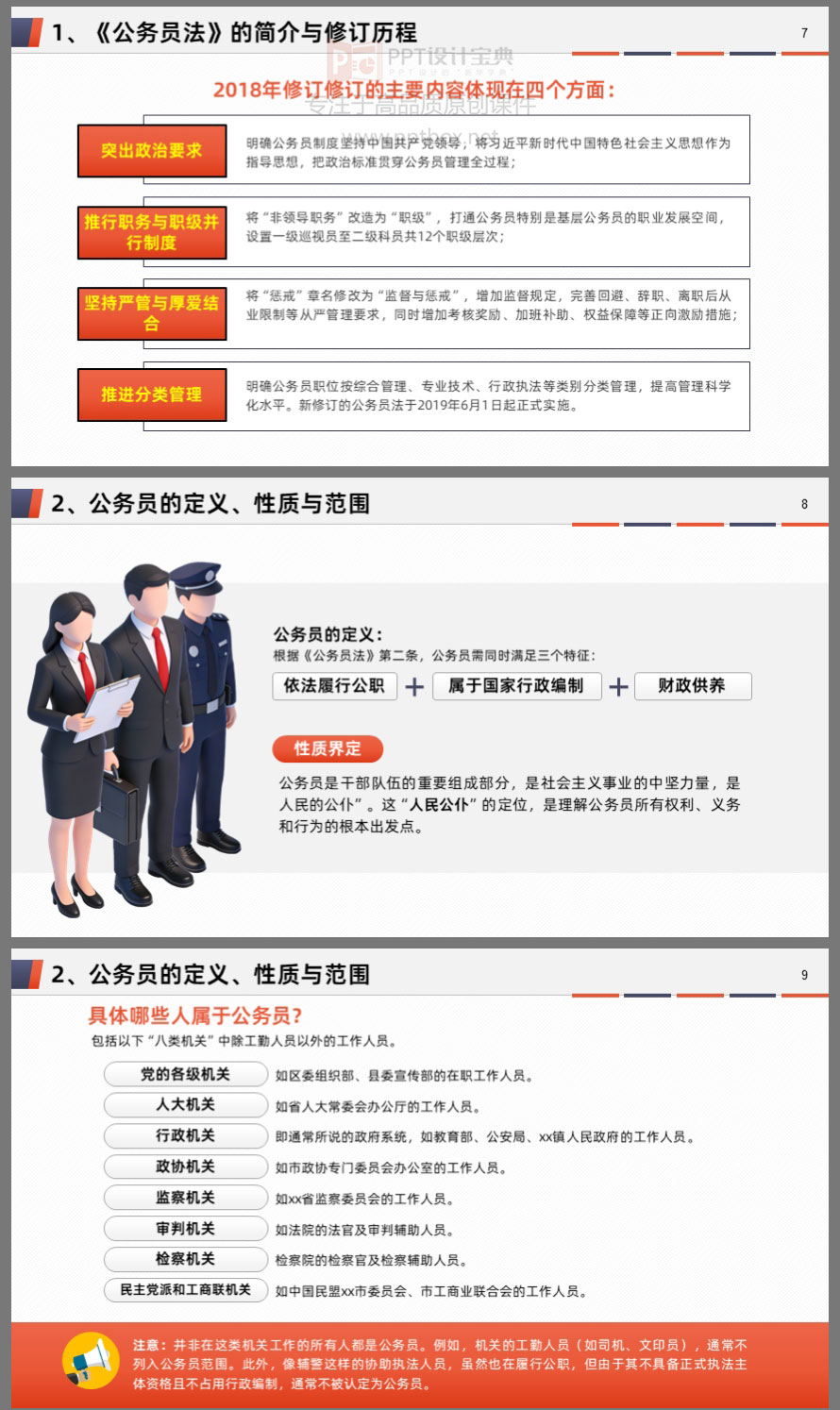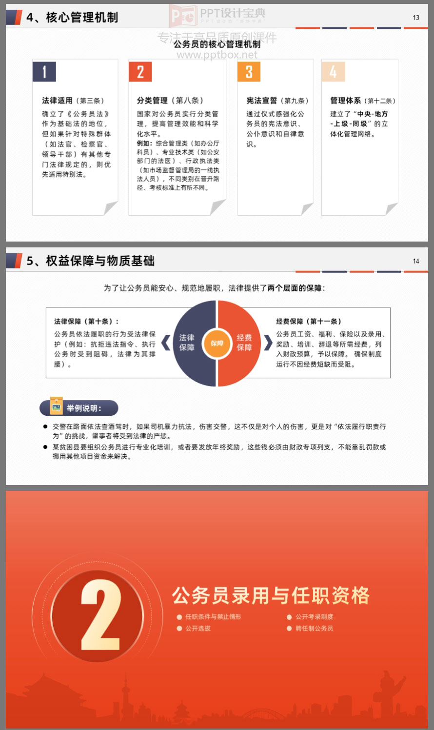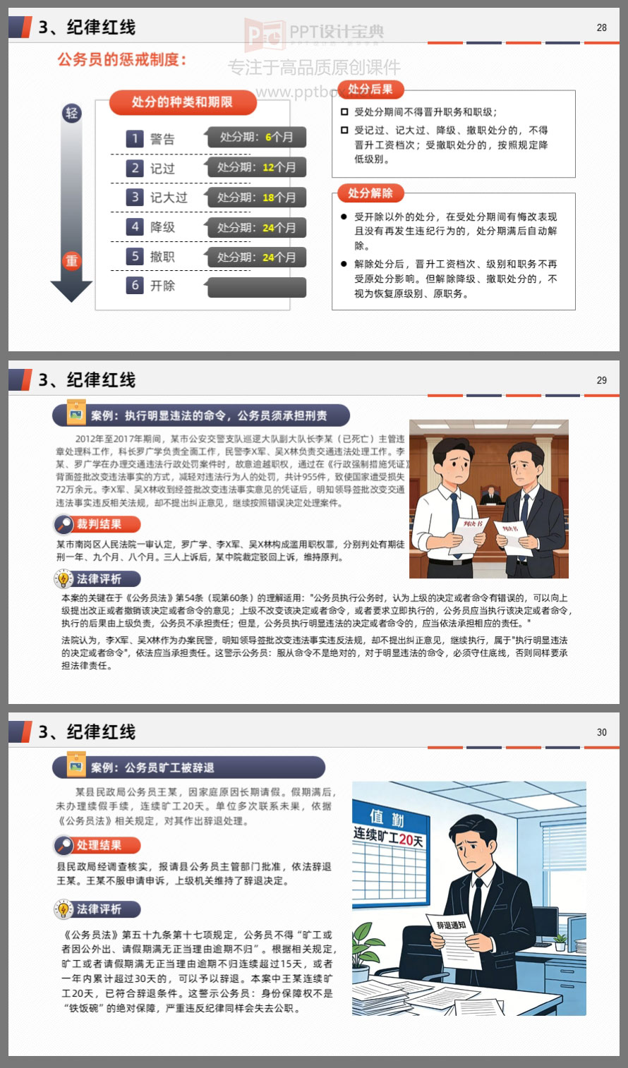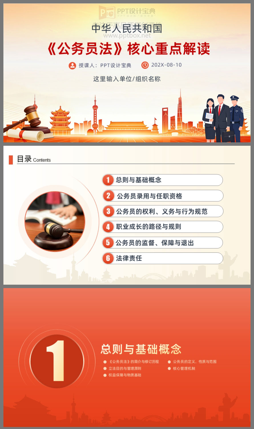 这份PPT课件基于最新《公务员法》及配套法规精心制作,共六大模块、50+页干货,全面覆盖公务员管理的每一个关键环节: