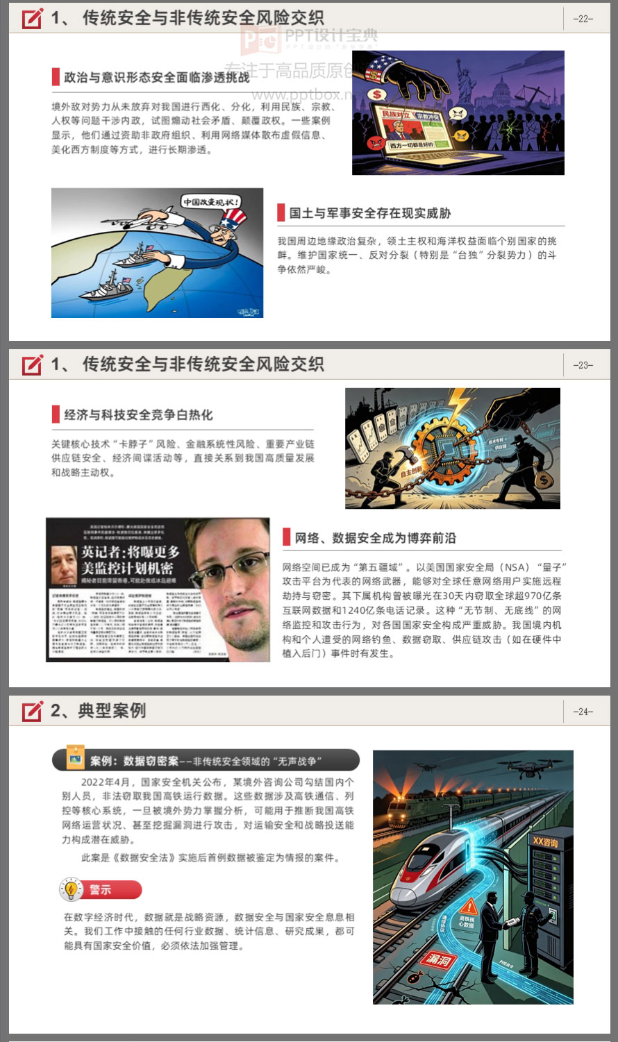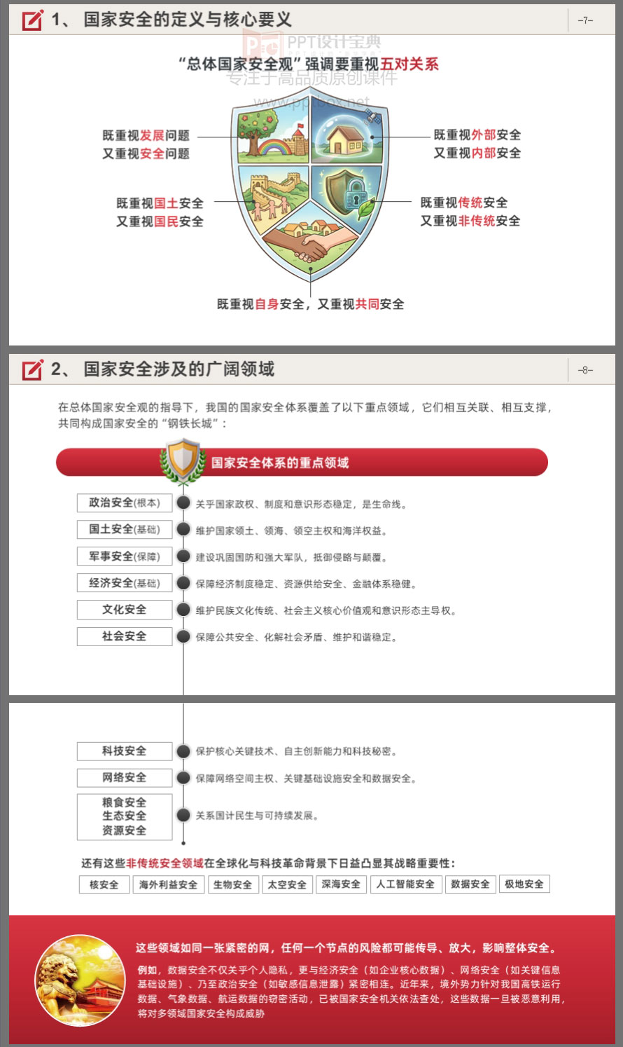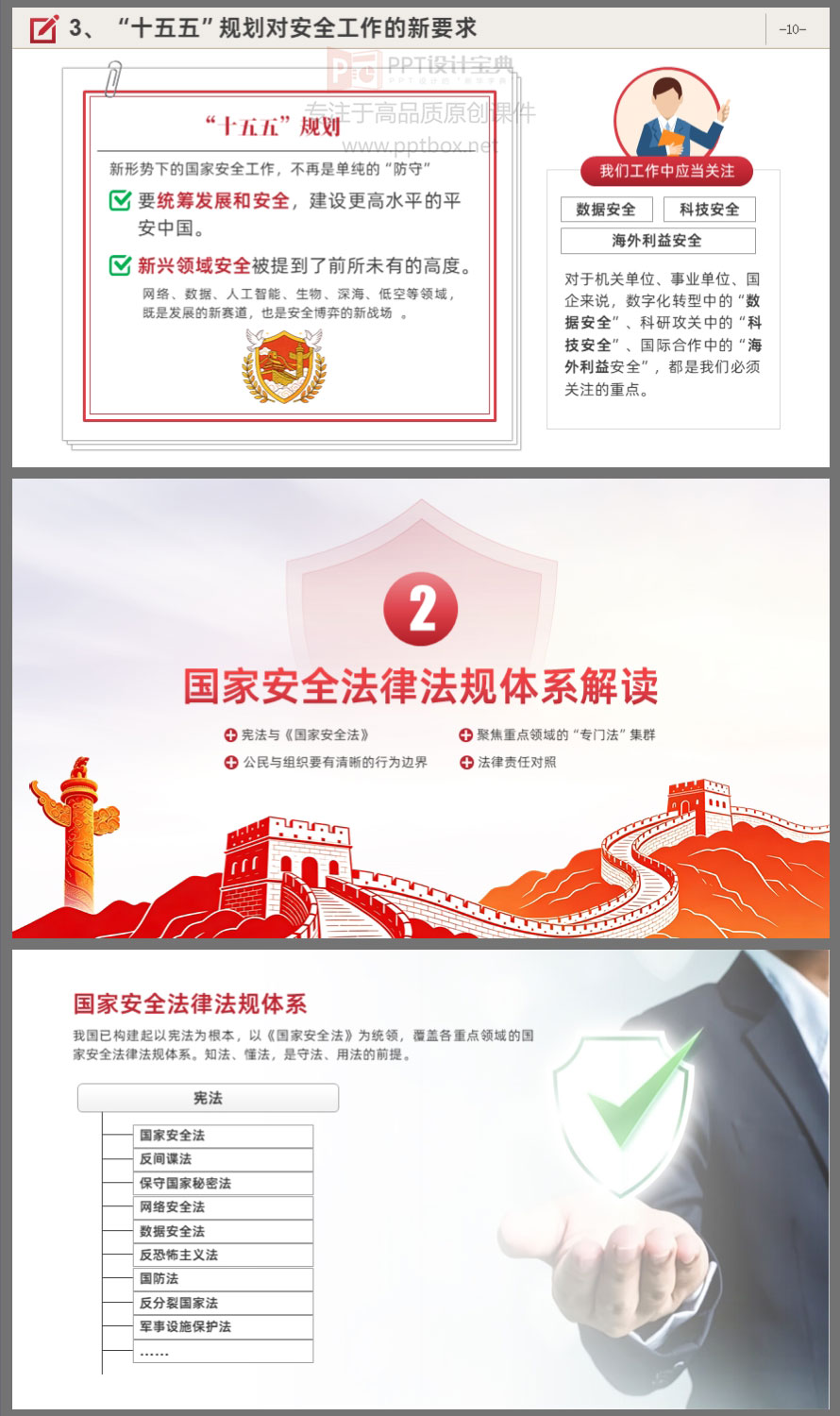 你以为国家安全只是谍战剧?错了!它就在你办公桌、朋友圈、出差途中。本PPT课件围绕总体国家安全观,系统梳理国家安全的时代内涵、法律法规体系、当前形势与典型案例,并结合“十五五”规划对安全工作的新要求,提出具体的行动指南。内容涵盖《国家安全法》《反间谍法》《保守国家秘密法》《数据安全法》等核心法律。课件结构清晰,适合机关单位、国企、事业单位开展国家安全教育培训使用。