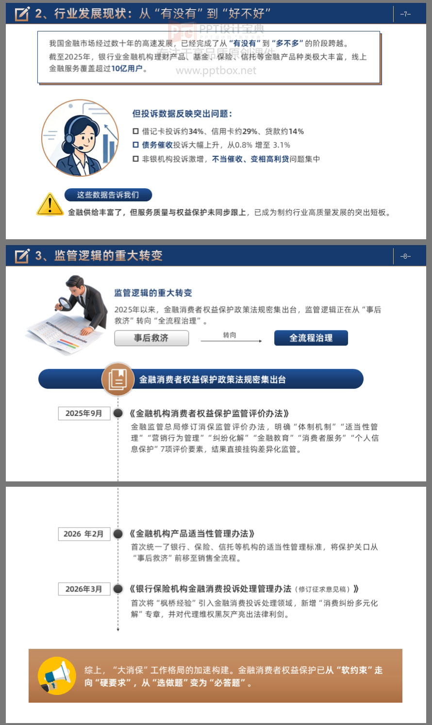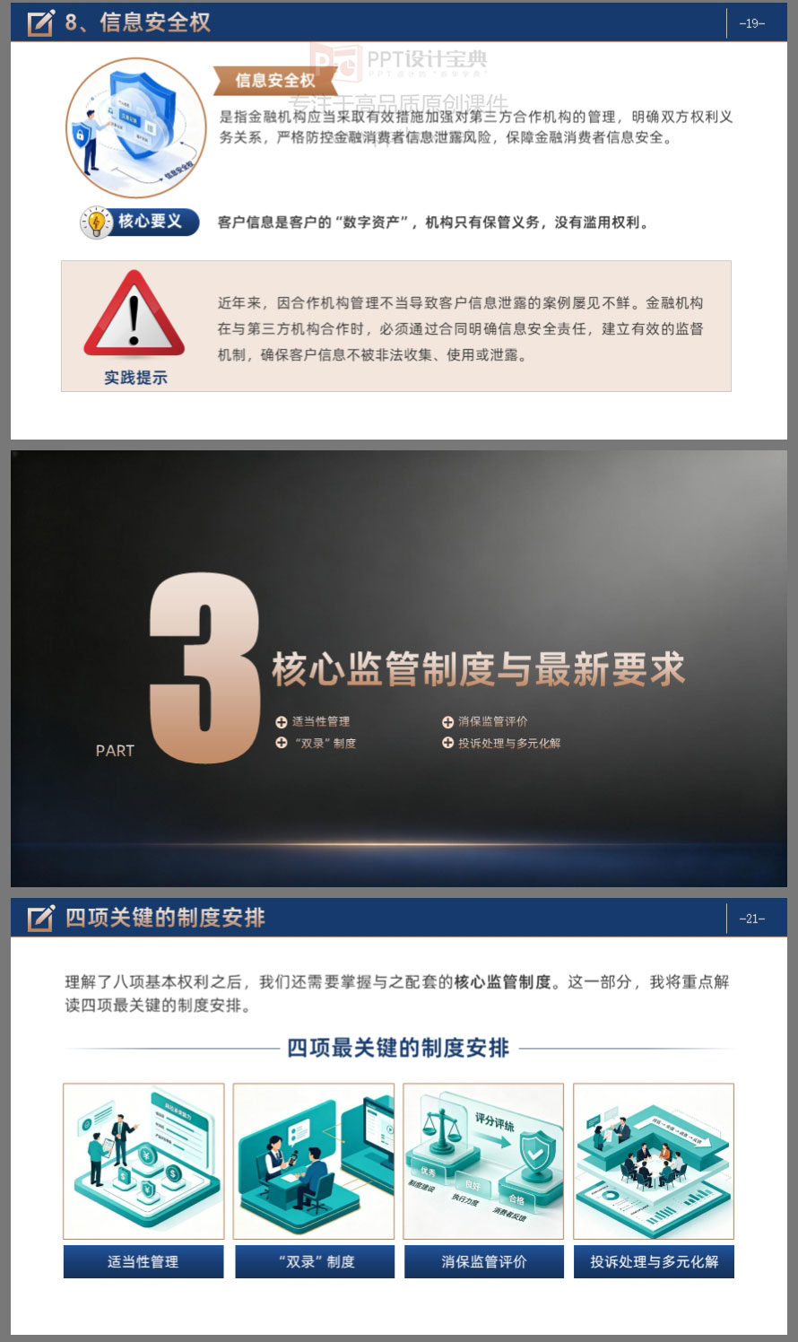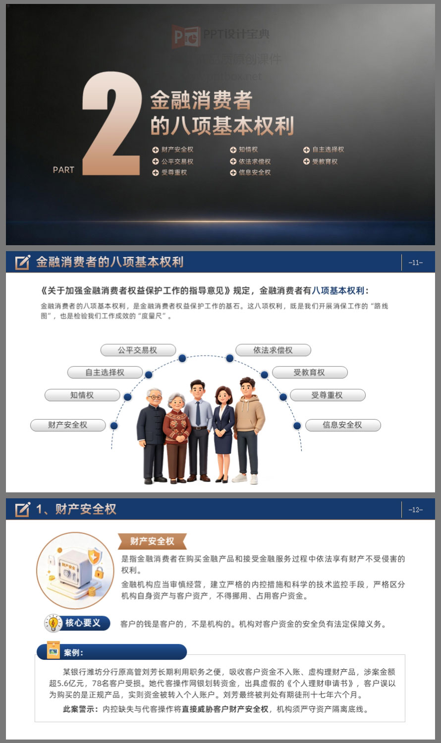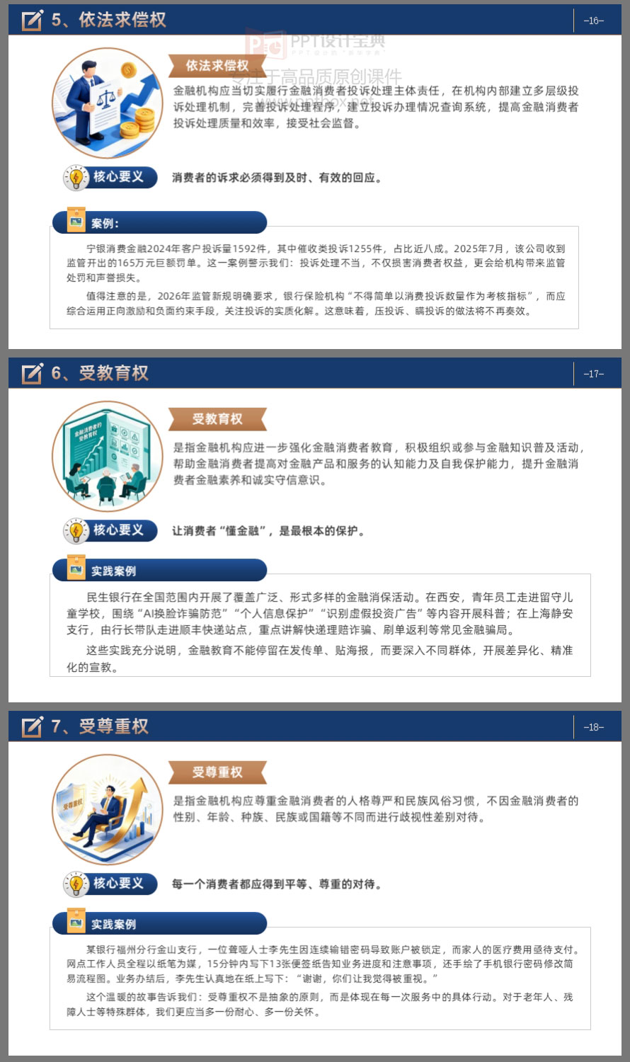 本PPT是一份完整的金融消费者权益保护培训课件,系统梳理了以下核心内容: