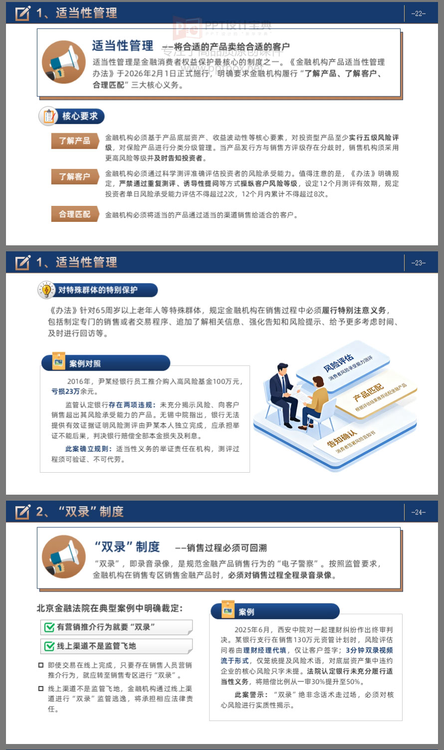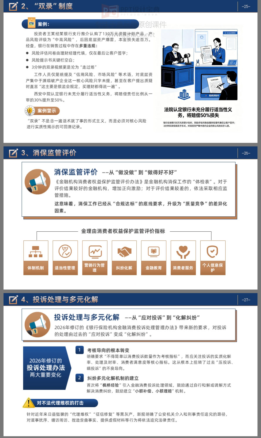 ✅ 2026年最新监管制度:《金融机构产品适当性管理办法》核心要点、“双录”制度的裁判规则、消保监管评价新导向