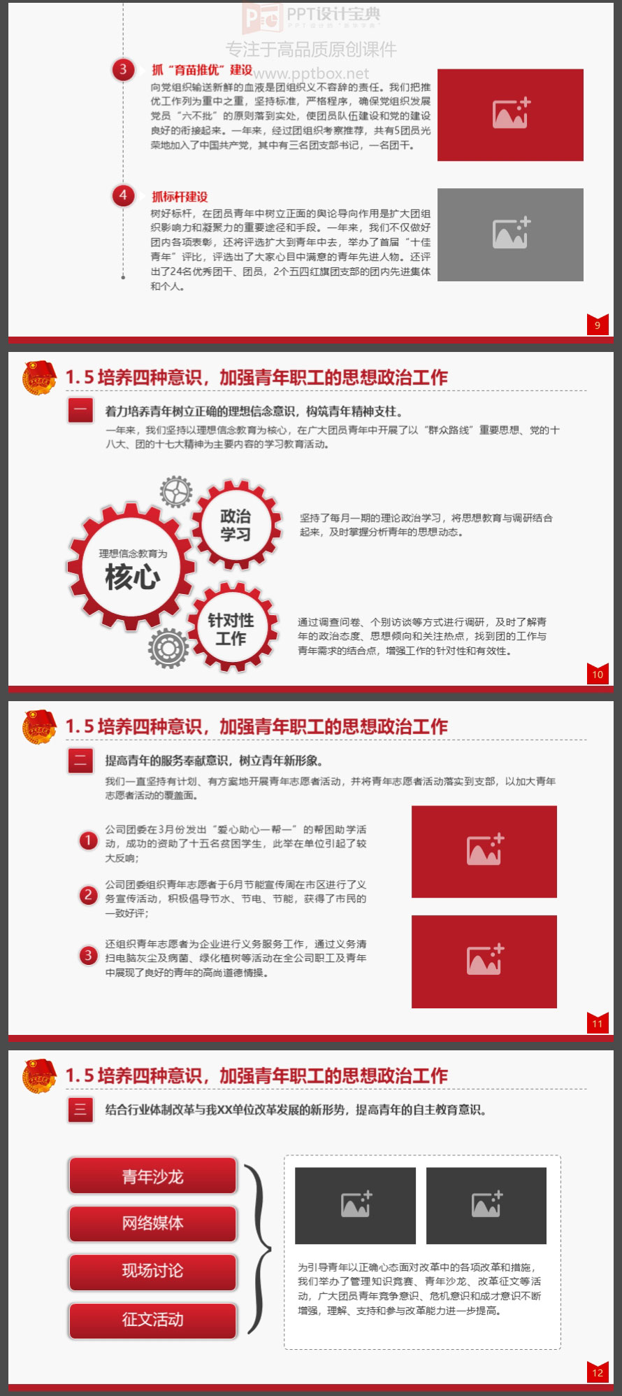 团委工作汇报是将前阶段工作做一个总结,分析存在的问题,并对下阶段的工作做规划。这个PPT以某单位的共青团委为例,图文并茂的方式将团委的工作做了汇报,主要包括工作亮点和主要做法、获得的荣誉、存在的问题……等