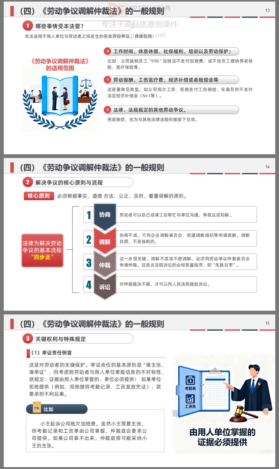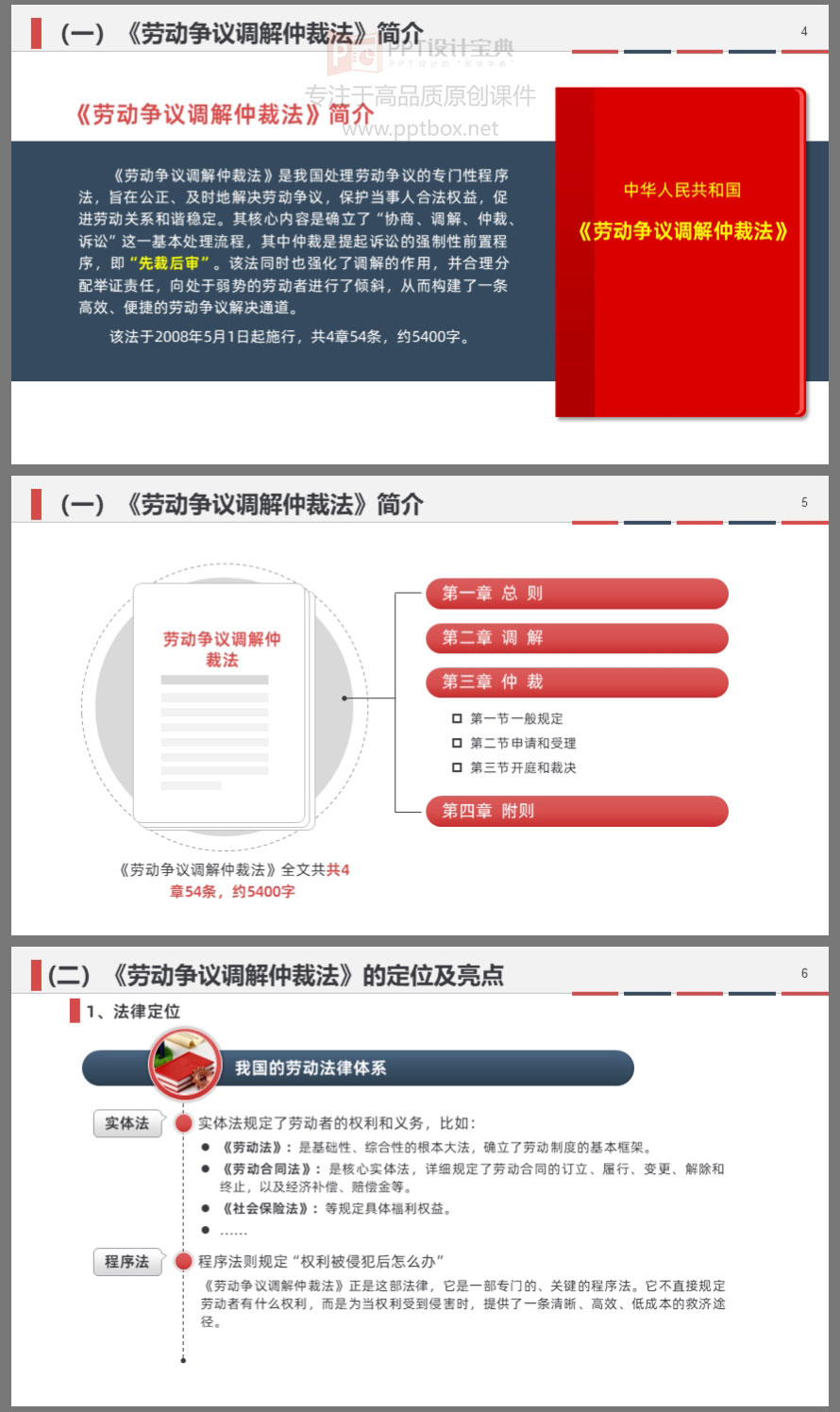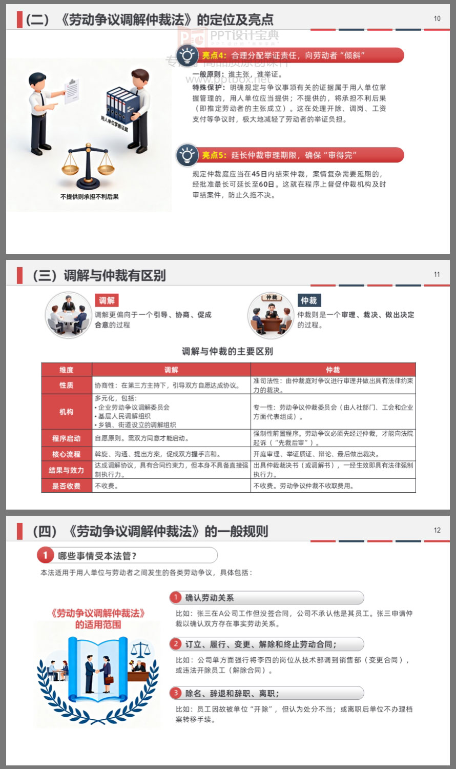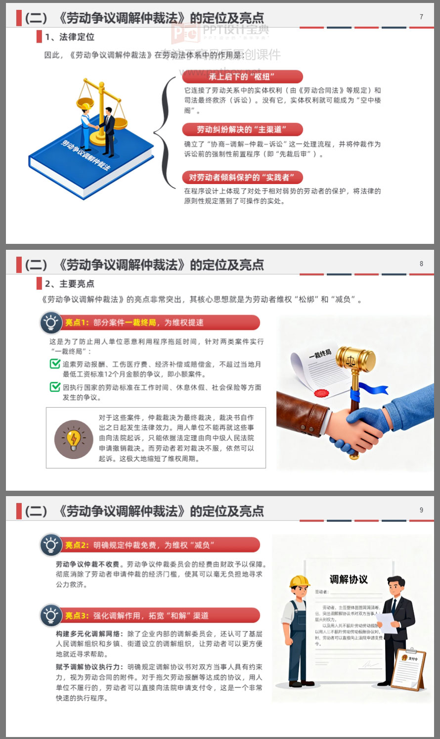 本PPT是将《劳动争议调解仲裁法》重点内容全覆盖,并穿插一些实践案例辅助说明。PPT共40页,含对应WORD文稿,易于编辑修改。