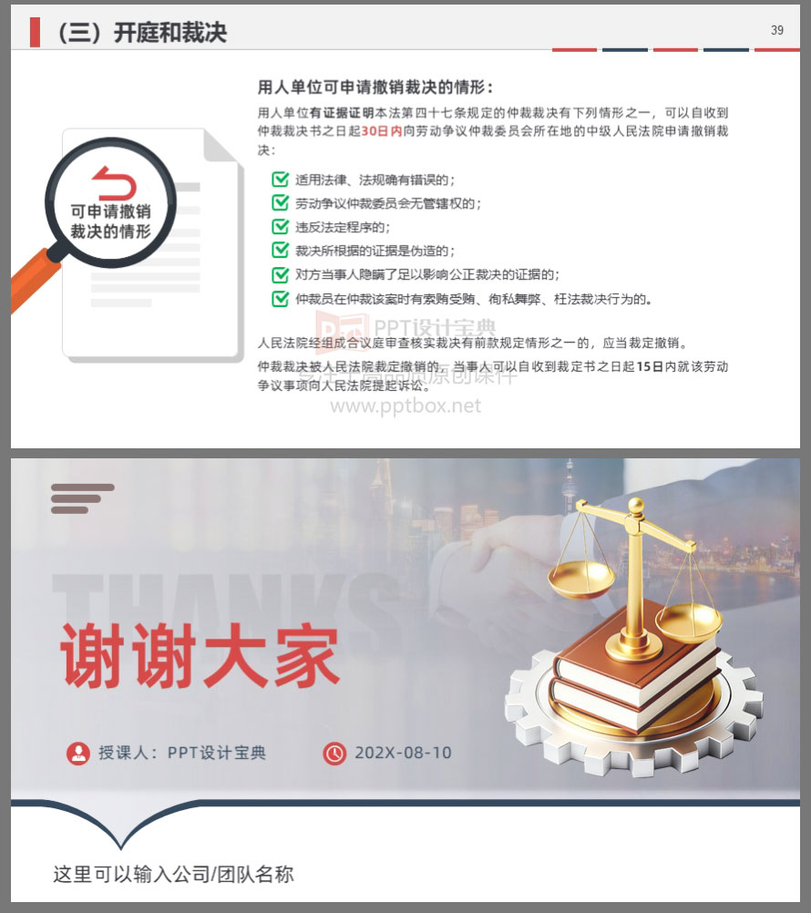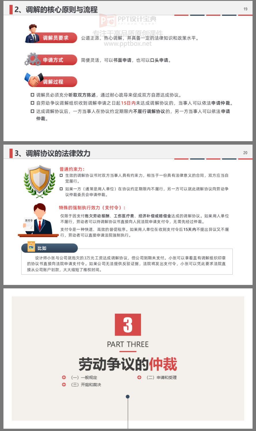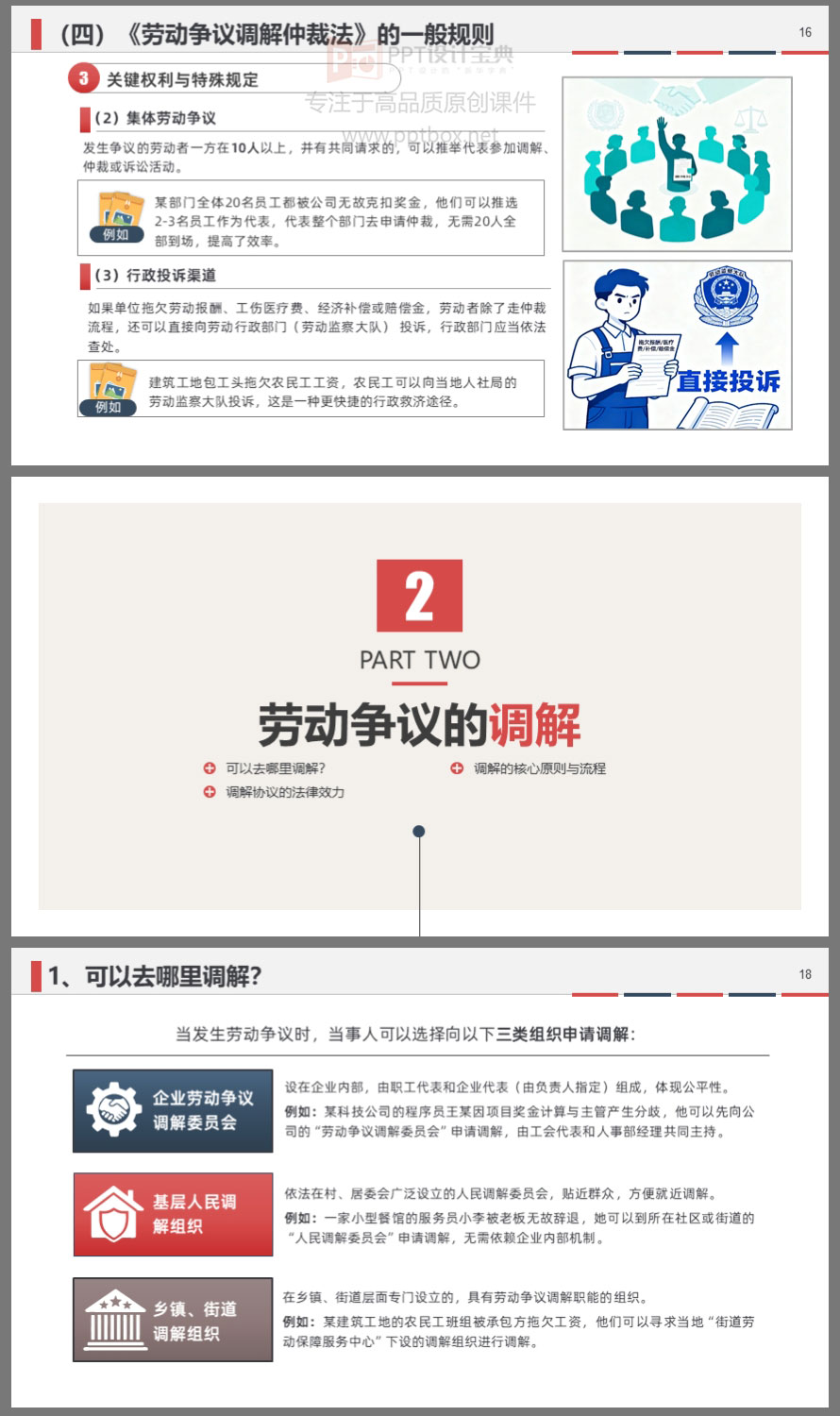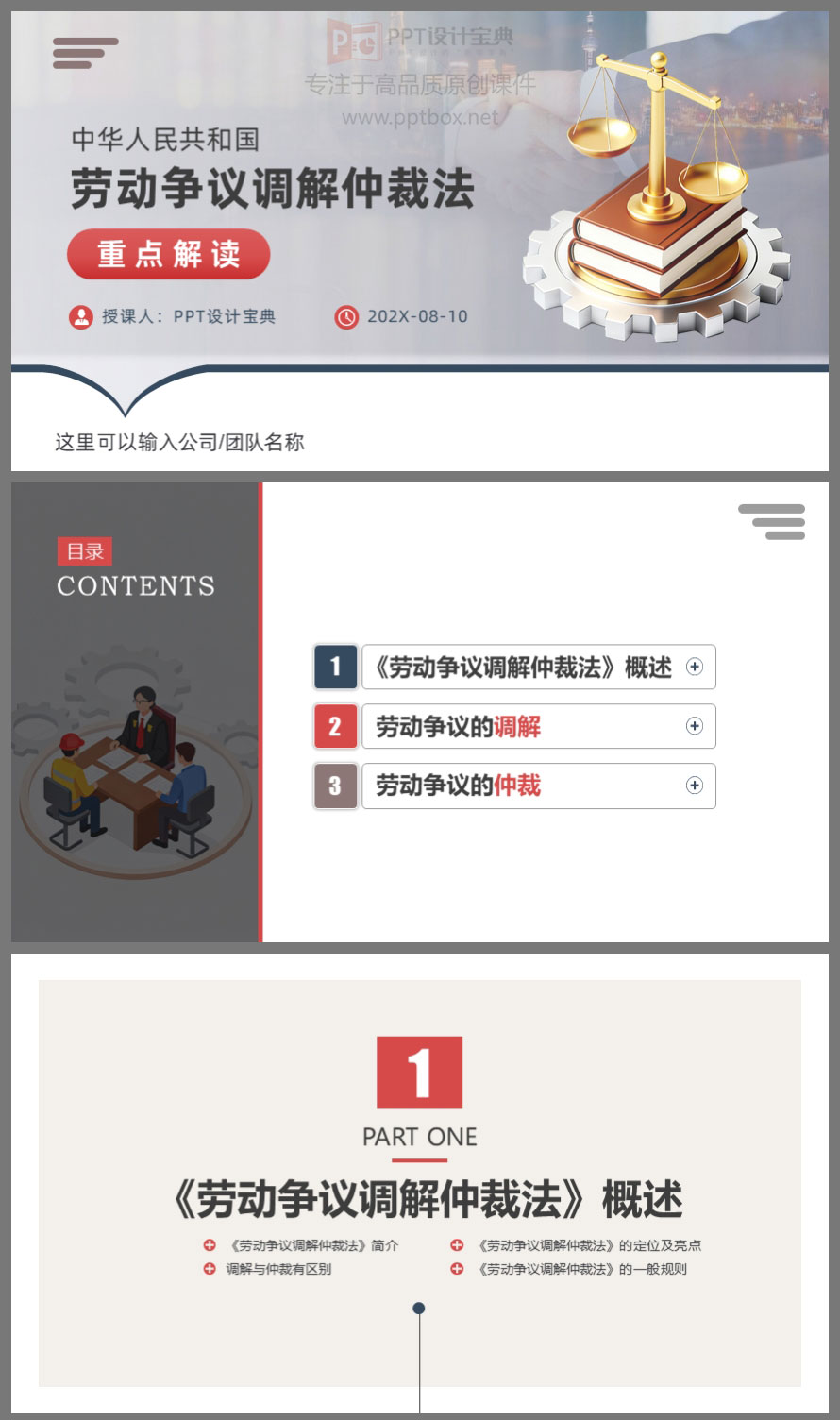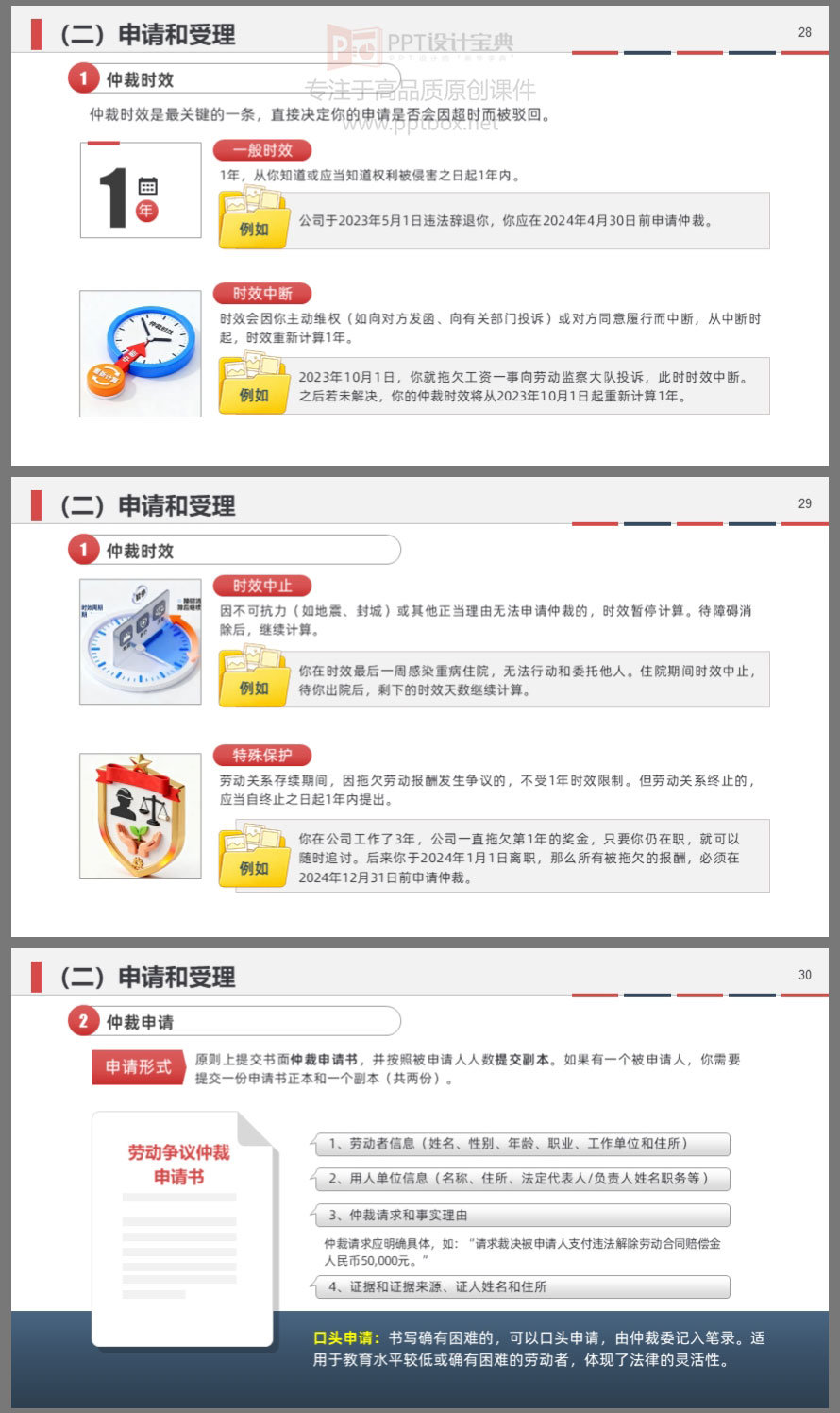 本PPT是将《劳动争议调解仲裁法》重点内容全覆盖,并穿插一些实践案例辅助说明。PPT共40页,含对应WORD文稿,易于编辑修改。